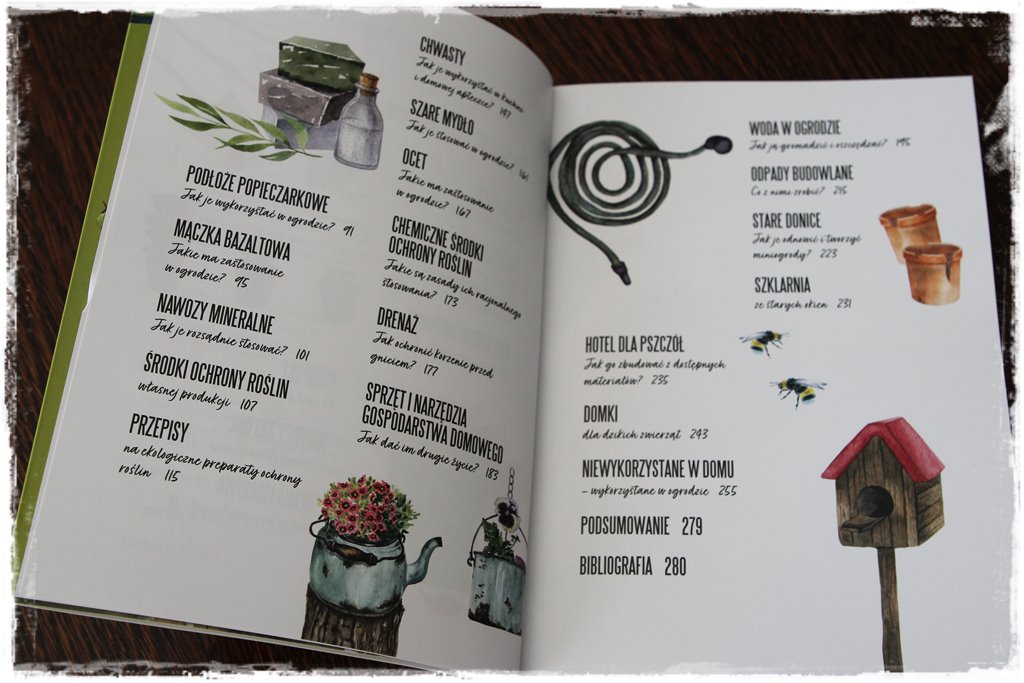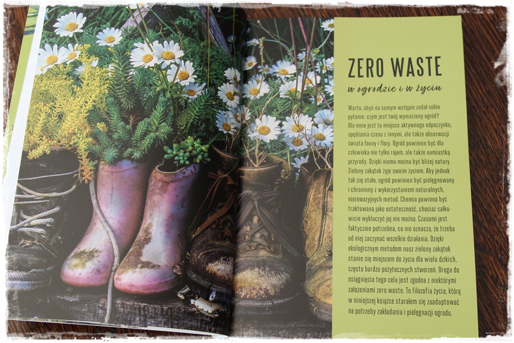 Nie jest to oczywiście powieść, ani tym bardziej kryminał, stąd nie spodziewaj się w tej książce szczególnie trzymającej w napięciu akcji. Jest to natomiast coś w rodzaju poradnika, który bezpiecznie przeprowadzi Cię przez różne obszary i wskaże działania oraz nawyki ekologiczne, które sprawdzają się zarówno w gospodarstwie domowym, jak i w ogrodzie. A przede wszystkim właśnie w ogrodzie. Zatem książka zachęci Cię do pewnego stylu życia i wprowadzenia pozytywnych zmian, a także wyeliminowania pewnych nawyków, którym zdecydowanie nie jest po drodze z ekologią.